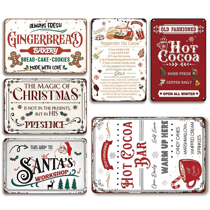 Christmas Gingerbread Bakery Metal Sign Always Fresh Made With Love Magic of Christmas Quote Santa Workshop Kitchen Wall Decor