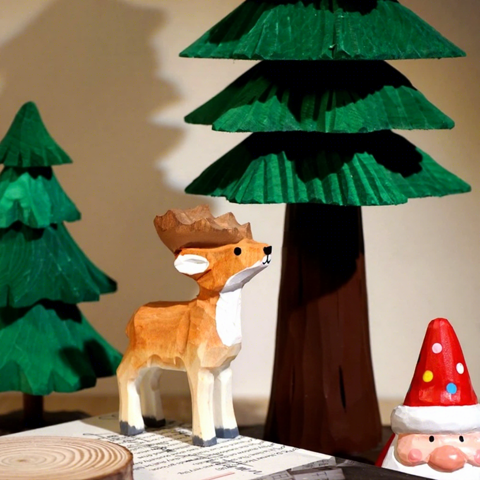 Christmas Handmade Resin Carving Small Ornaments Pine Snowman Old Man Elk Solid Wood Carving Holiday Atmosphere Decorations