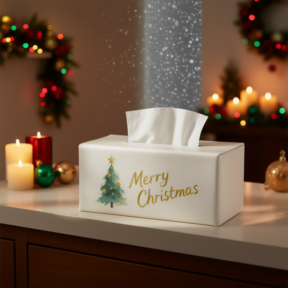 Christmas Leather Tissue Box Cover Rectangle Ivory Decorative Holiday Home Office Table Decoration