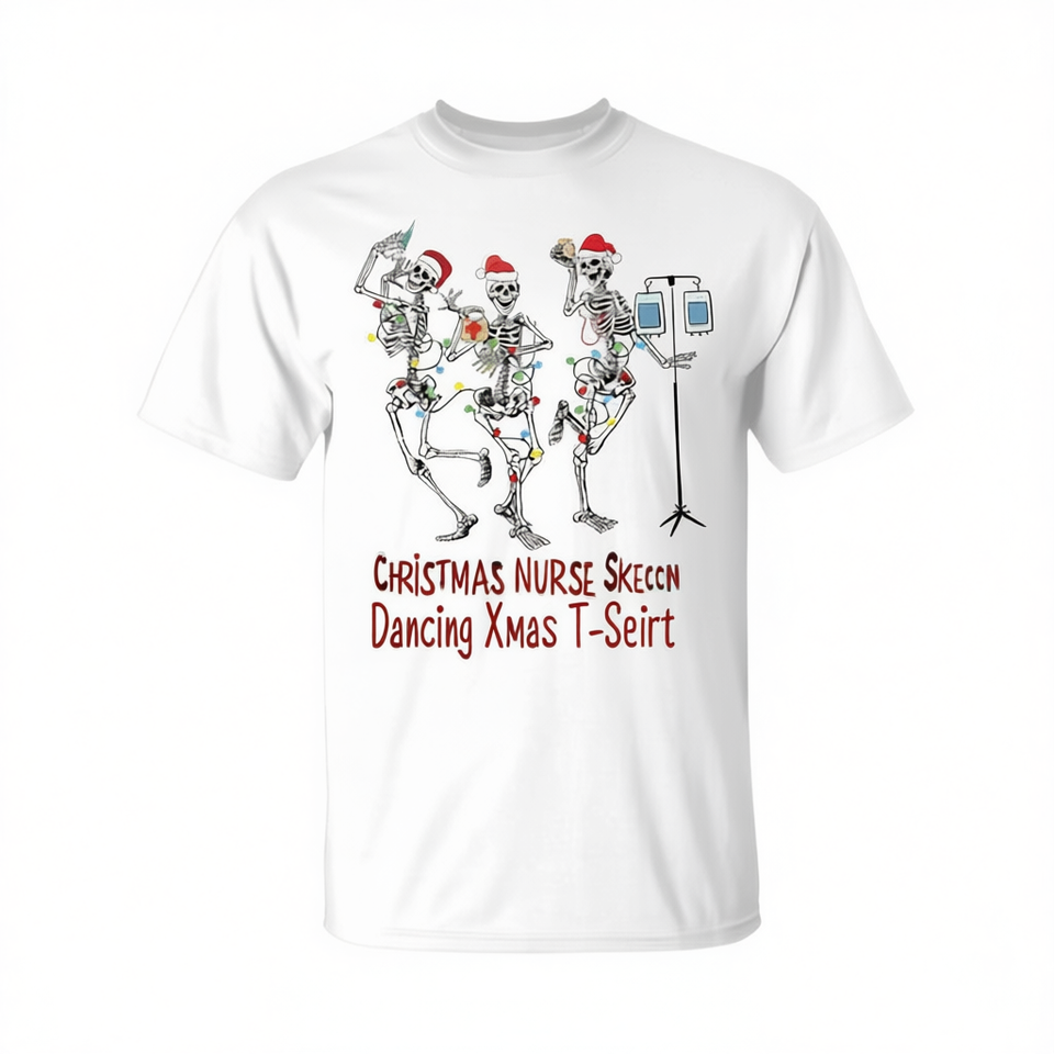 Christmas Nurse Skeleton Dancing Xmas T-Shirt White Adult Unisex Holiday Gift Apparel