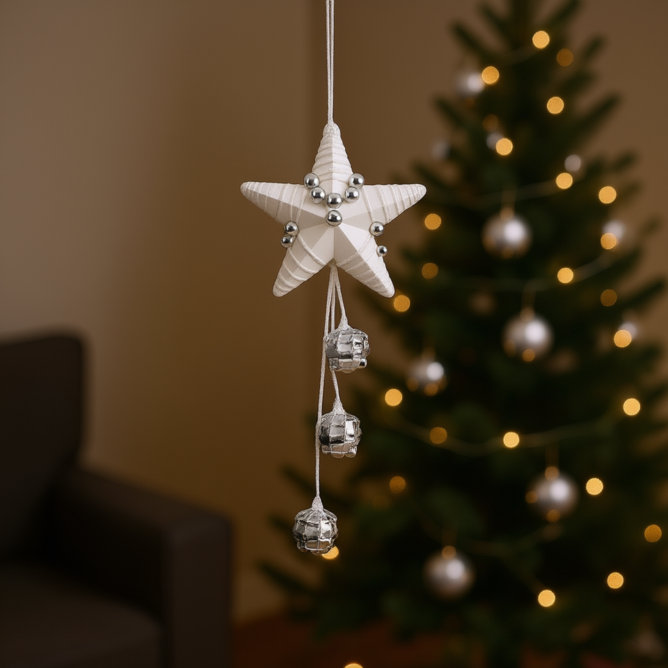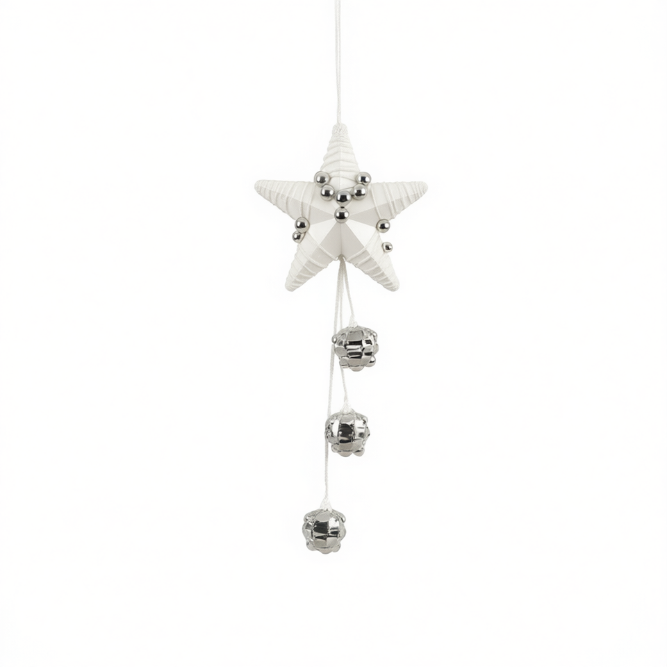 Christmas Ornament Star Shape Hanging Decor Silver Beads Fabric Pearl Cotton Plastic Christmas Tree Decoration
