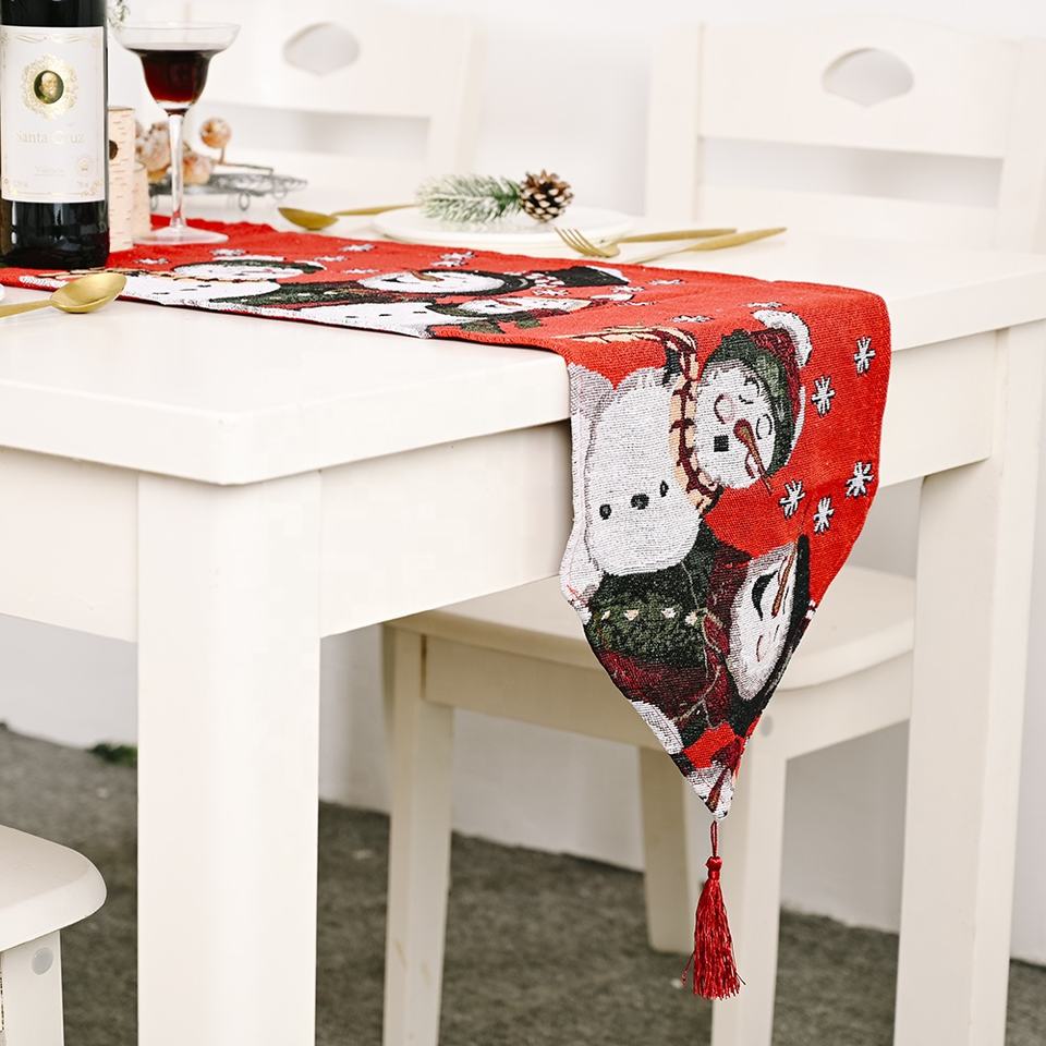 Runner da tavola con motivo pupazzo di neve jacquard e bordo con nappe rosseNome del prodotto