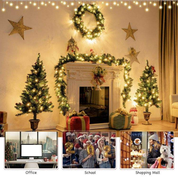 Set Decorativo per Festa di Natale 4 Pezzi Inclusi Ghirlanda, Corona e Alberi d'Ingresso