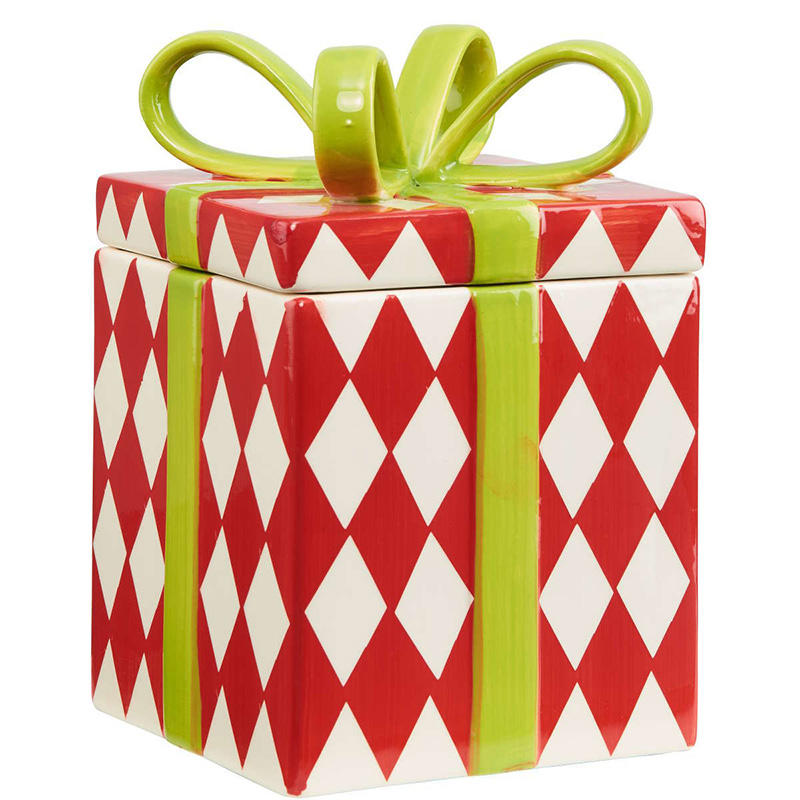 Natale Rosso Puntini o Diamanti In Ceramica di Stoccaggio Cookie di Regalo Vaso di ceramica biscotto vaso per I Regali o di Natale Decor
