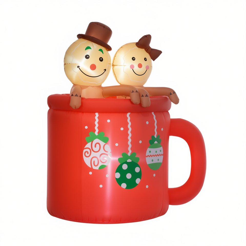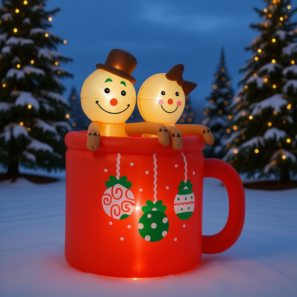 Christmas Snowman Inflatable Outdoor Holiday Yard Decoration PVC 2-Person Mug Design