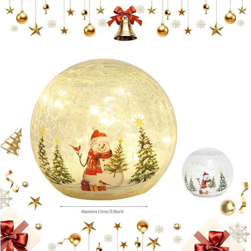 Luci LED a Forma di Pupazzo di Neve per Natale, Decorazioni Natalizie da Interno, Globo di Natale a Batteria con Sfere di Vetro Illuminato