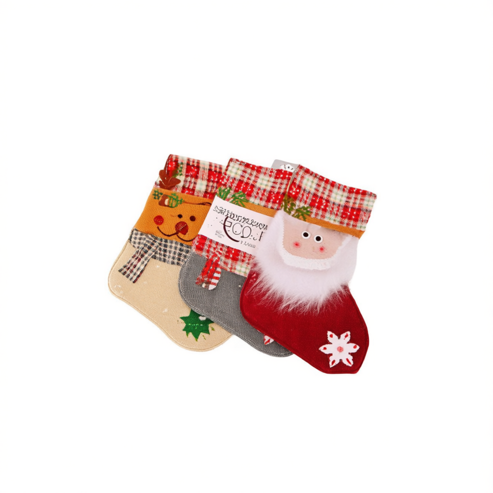 Christmas Stocking 3 Styles Plaid Trim Embroidered Santa Reindeer Design For Holiday Decoration