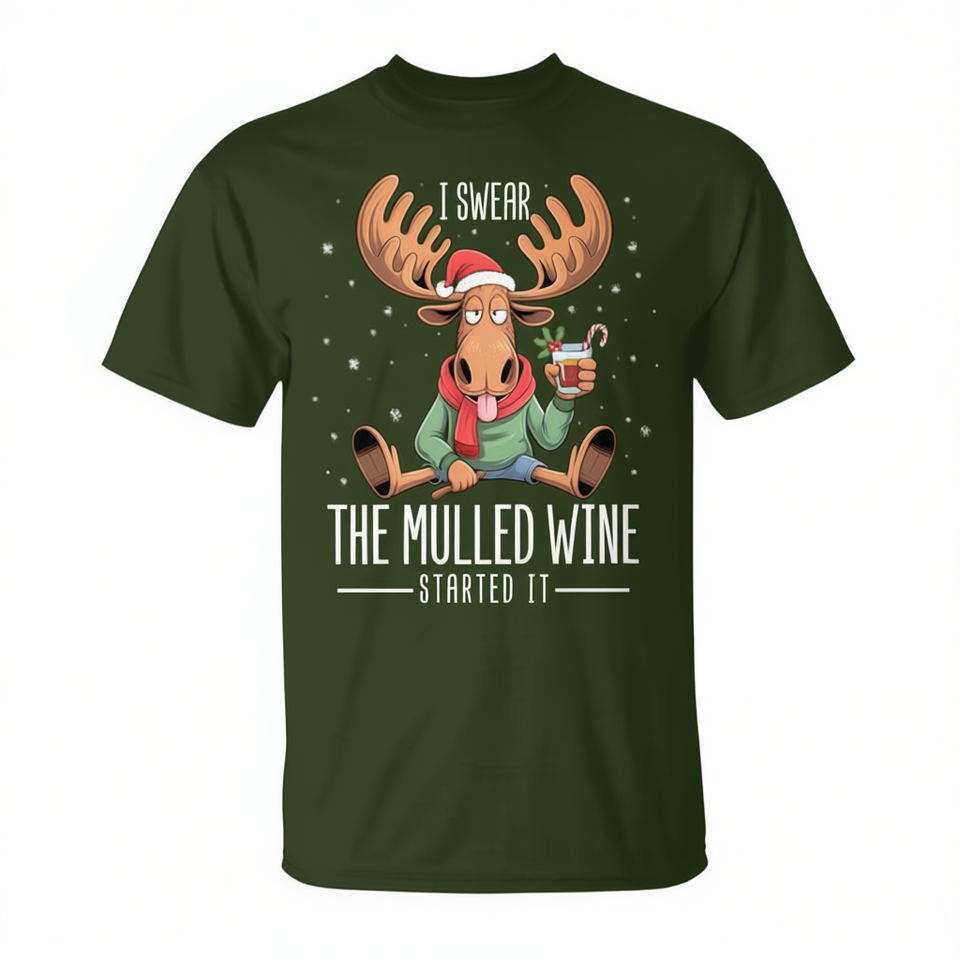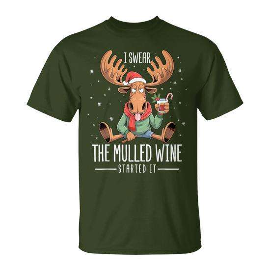 Maglietta natalizia I Swear The Mulled Wine Started IT Moose Design Regalo di Natale Uomo Donna Unisex