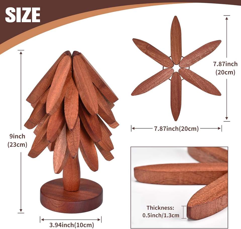 Set di sottobicchieri a forma di albero di Natale, 5 sottopentola in legno di noce a forma di albero con supporto per piatti caldi (22,4 cm)