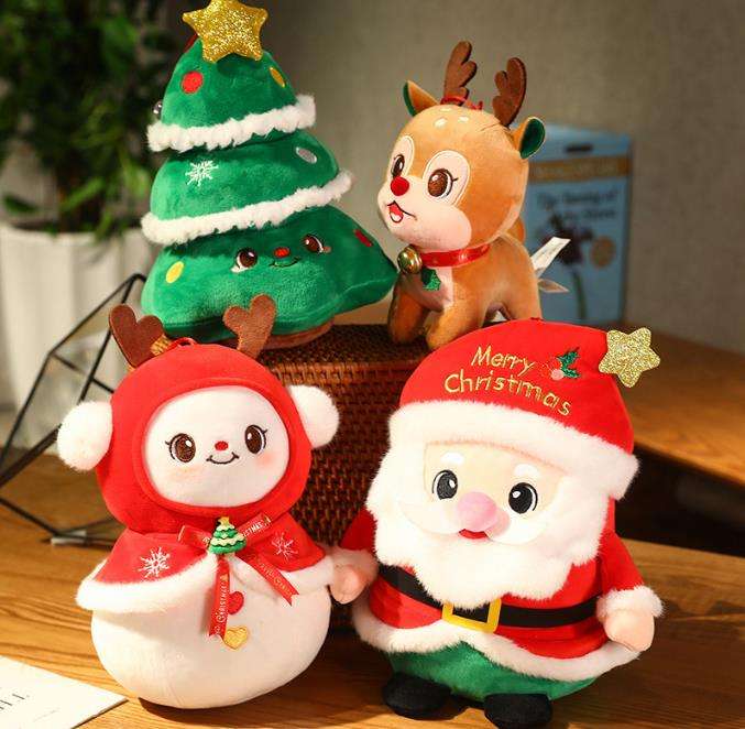 Christmas Tree Collection Plush Toys Embroidered Santa Claus Elk Snowman Bear Pp Cotton Filled Wholesale Gift Idea for Apple