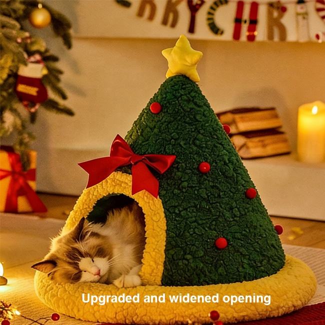 Christmas Tree Triangle Pet Nest Deep Sleep Windproof Cave Design Comfortable Pet House