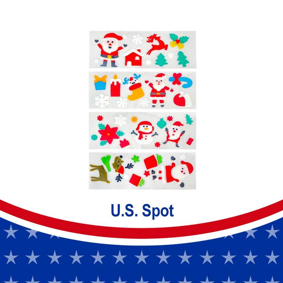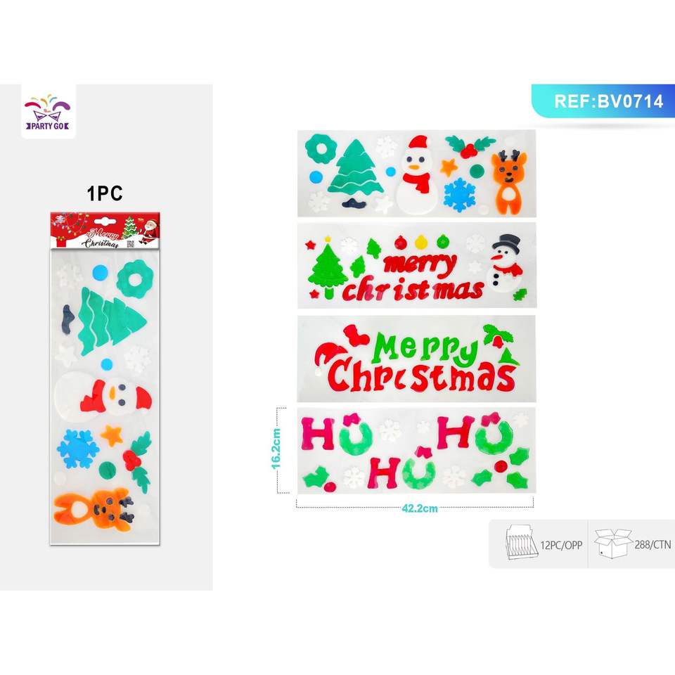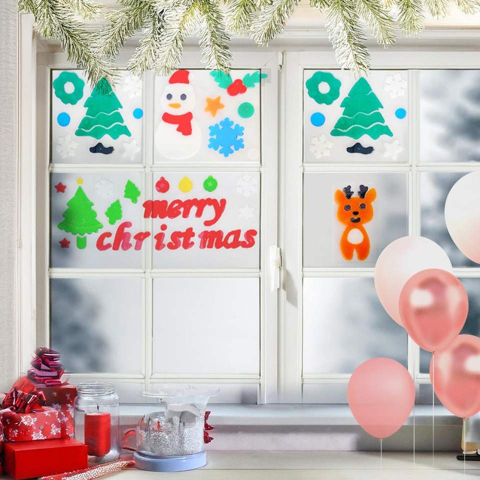 Adesivi Natalizi per Finestre, 12 Fogli in Gel con Disegni Invernali: Babbo Natale, Pupazzo di Neve, Fiocchi di Neve, Renne