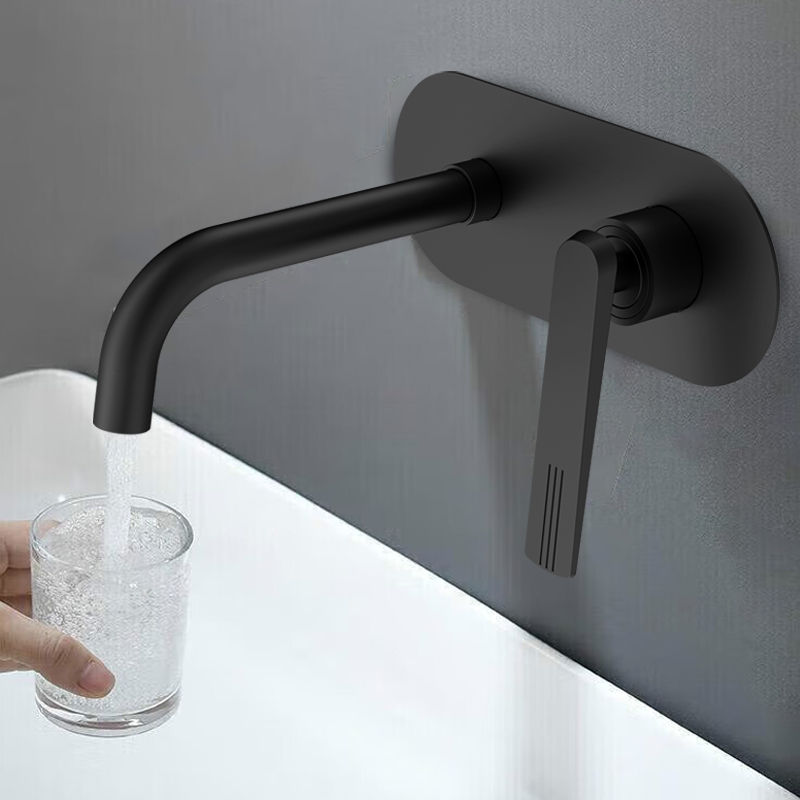 Nero cromato lavabo a leva singola In ottone, rubinetto da bagno, a parete, a scomparsa, per lavabo