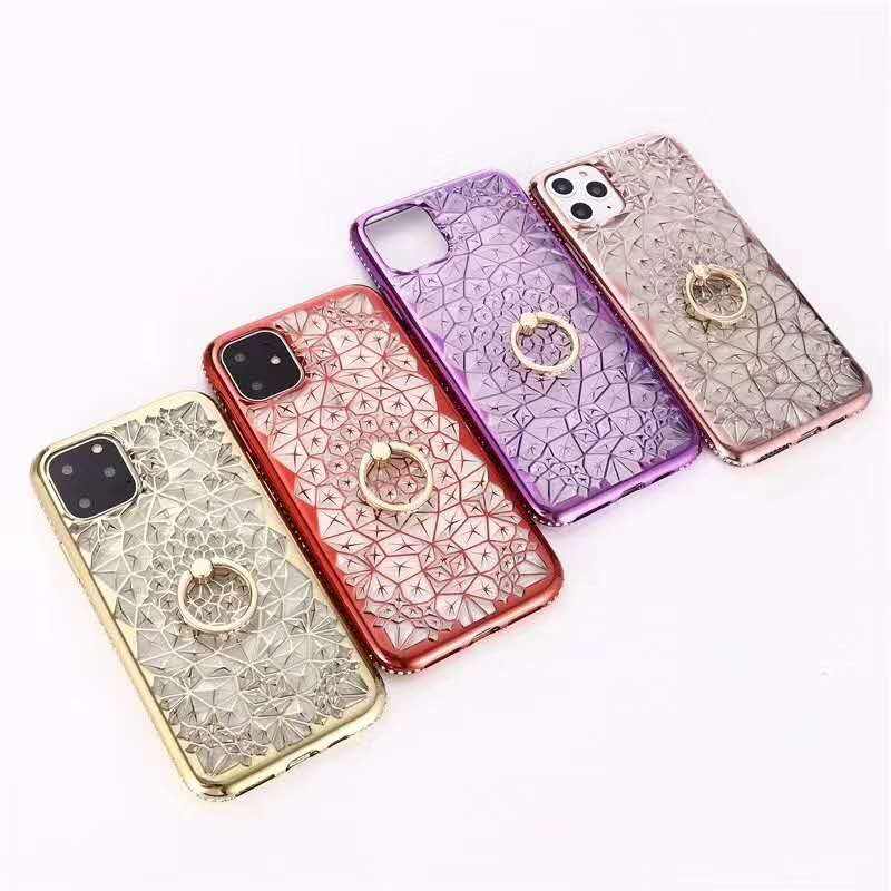 Custodia morbida per telefono trasparente con motivo a diamante cromato con supporto ad anello per custodia Xiaomi Redmi Note 4 5 6 7 Pro