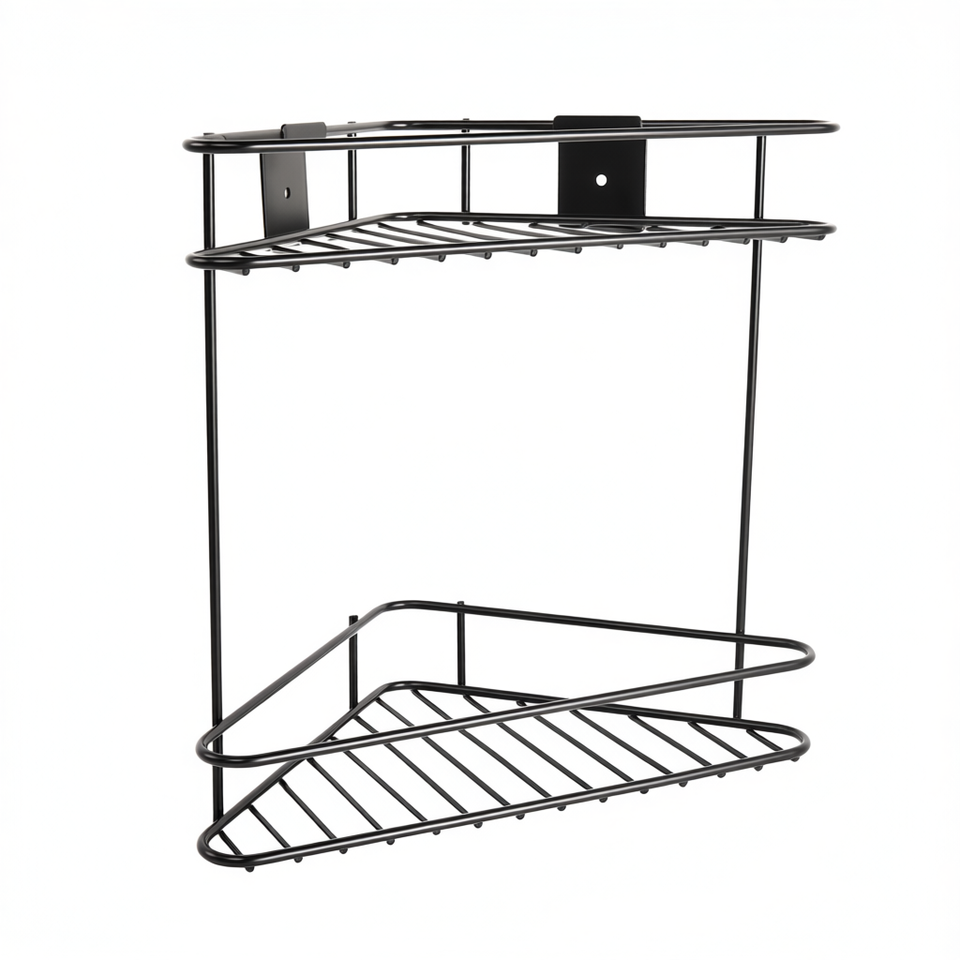Cestello Doccia Angolare Doppio Chrome Evo Nero Opaco 31 Cm di Lunghezza, Mensola Portaoggetti per Bagno