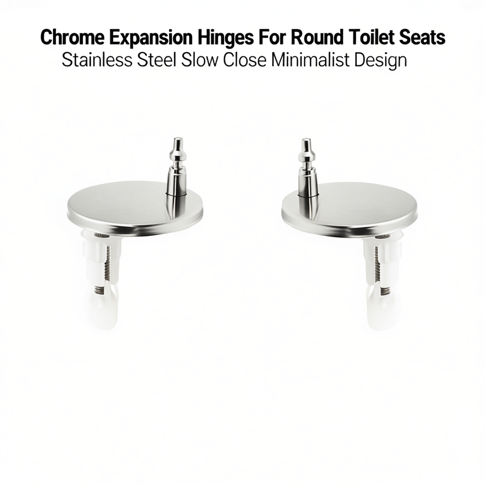 Cerniere di espansione cromate per sedili WC rotondi in acciaio inossidabile con chiusura rallentata e design minimalista
