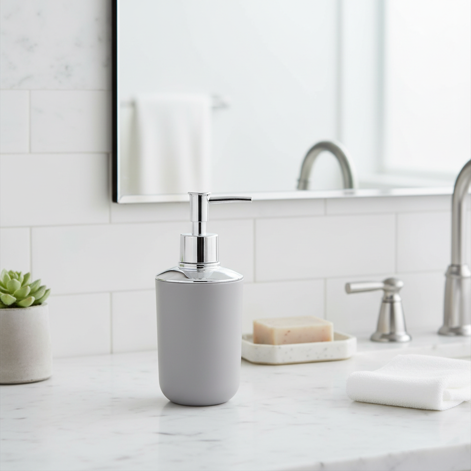 Chrome Gray PP and ABS Hand Sanitizer Bottle 65x65x175cm Liquid Soap Dispenser for Home or Office Use