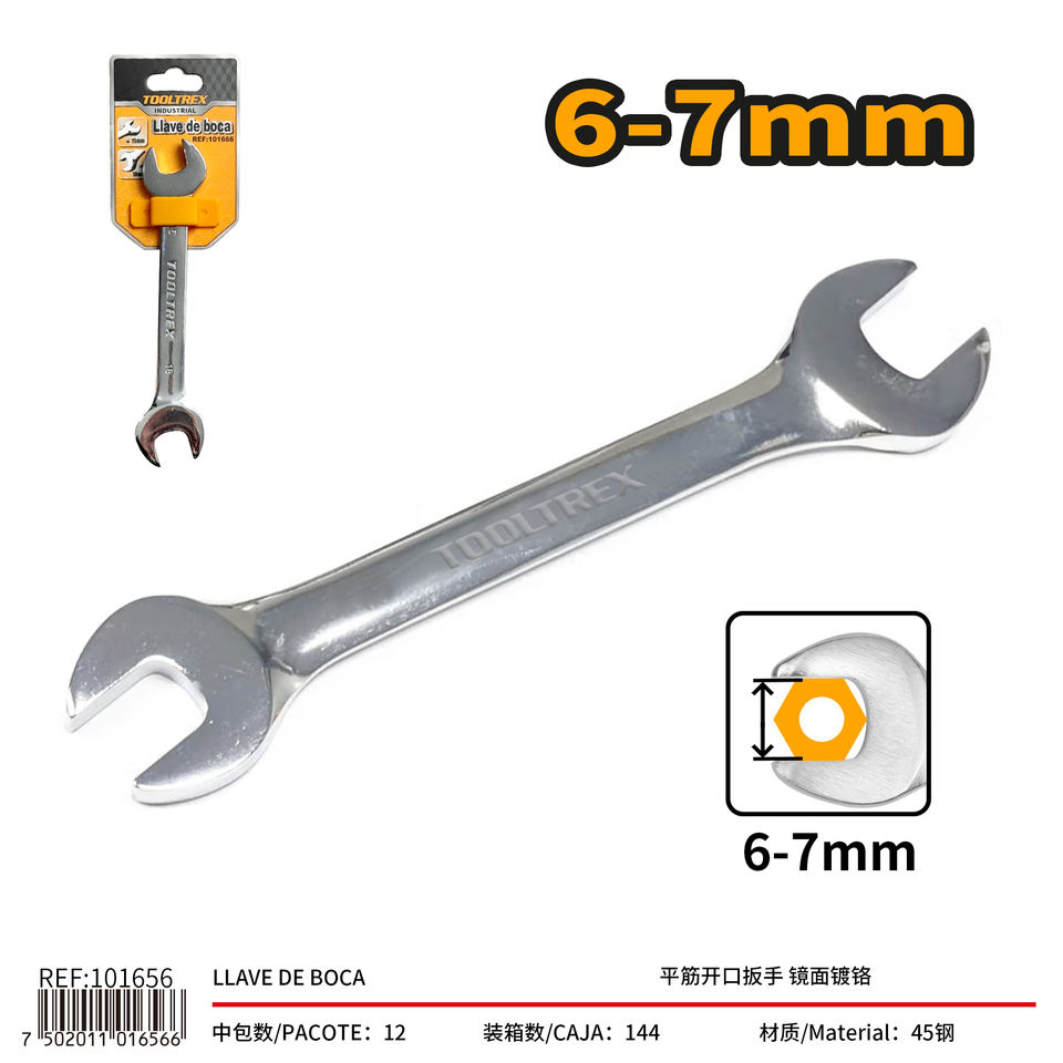 Tooltrex 6-7mm Double End Open Wrench Chrome Plated Metric Manual Hand Tool