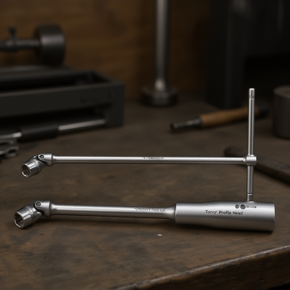 Chiave a T cromata con attacco girevole per viti a testa Torx