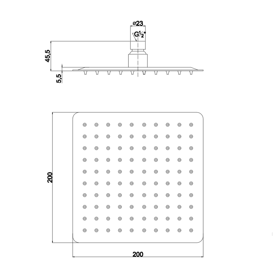 Soffione Doccia Quadrato 20x20 in Acciaio Cromato per Bagno e Toilette
