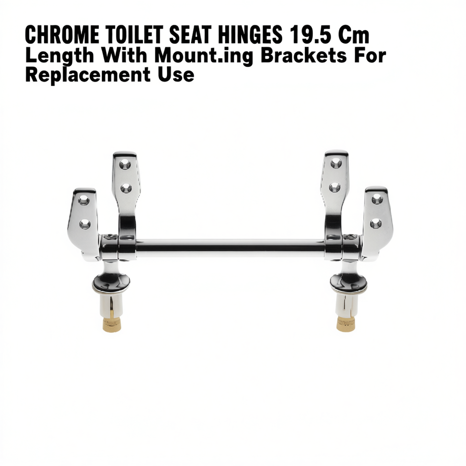 Cerniere per sedile WC cromate, lunghezza 19,5 cm, con staffe di montaggio per uso sostitutivo