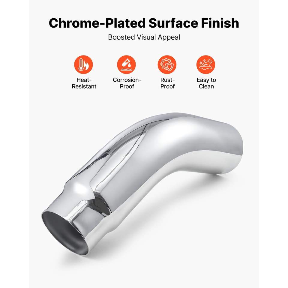 Chrome Turn Down Exhaust Tip Clamp for Truck Sedan 5 Inch Inlet 6 Inch Outlet 23 Inch Overall Length Elbow Exhaust Pipe
