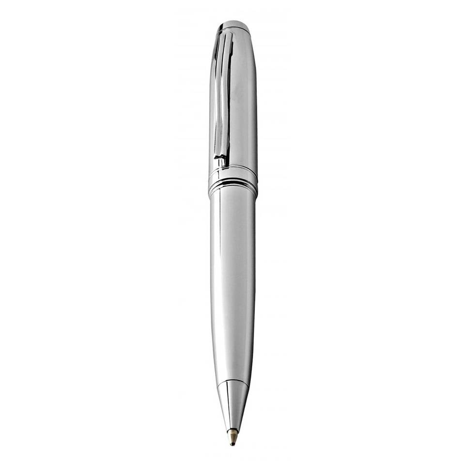 Penna a Sfera in Ottone Cromato 0.7mm con Dettagli in Plastica e Metallo, Ideale per Regali Promozionali, Disponibile in Legno, Bambù e Rame