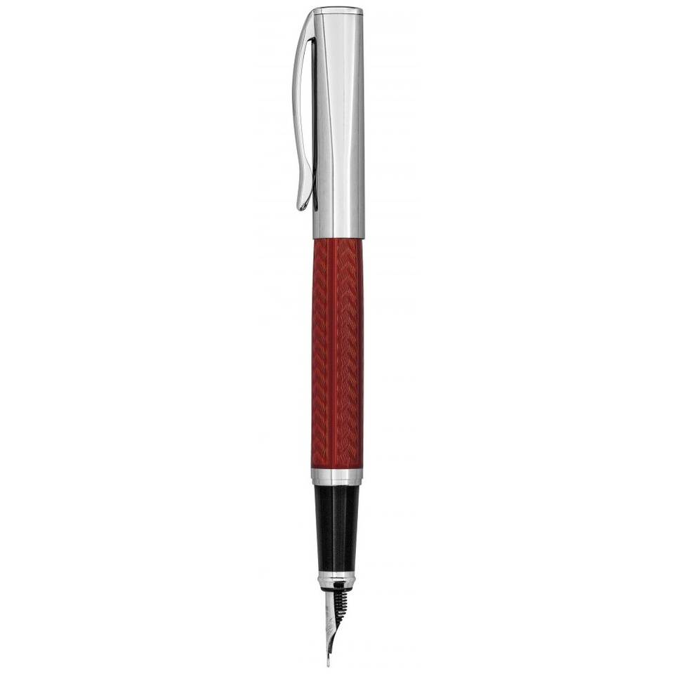 Penna Stilografica Cromata Rossa con Motivo a Spina di Pesce e Finiture Argento