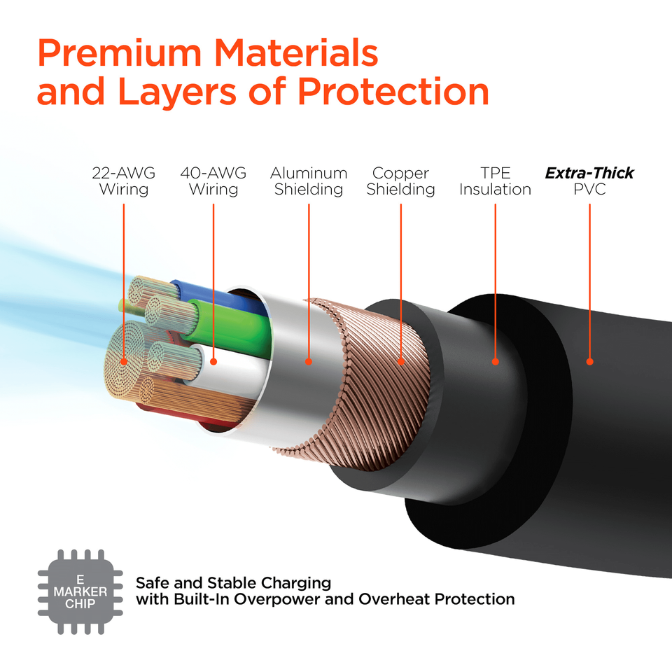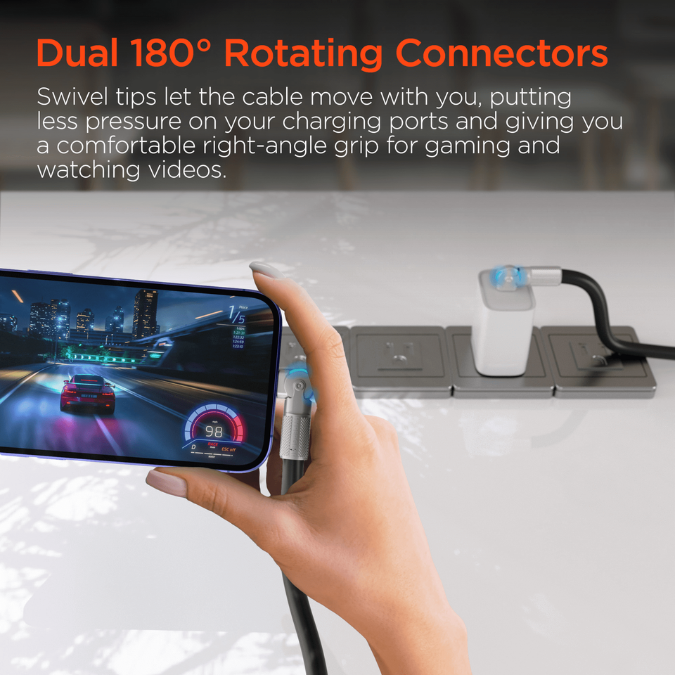 Cavo USB-C a USB-C robusto da 100W con ricarica rapida, angolato a 180 gradi, lunghezza 3,6m, 100% originale