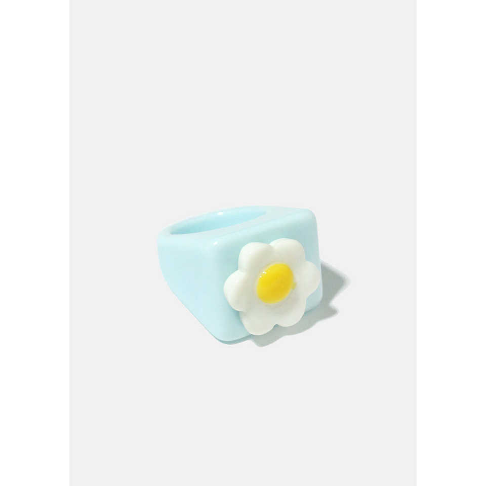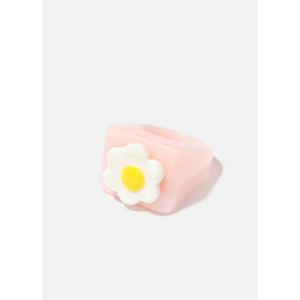 Chunky Resin Flower Ring Princess Cut Diamond Trendy Stainless Steel Fashion Jewelry Rose Gold Gold Inlay Stylish Fashionable