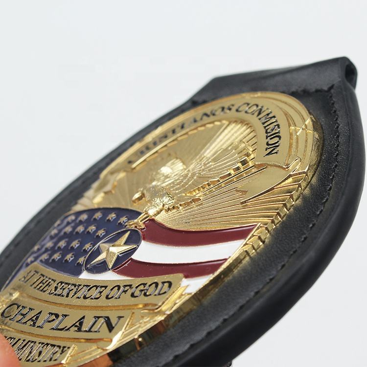 Nome del prodotto:Distintivi cappellano con supporto in vera pelle con Logo in metallo