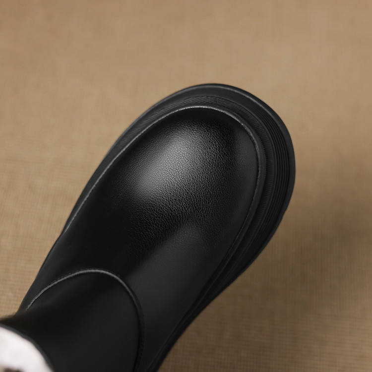 Stivali Corti con Plateau Cialisa per Donna, Inverno 2025, Nuovi Stivali da Neve con Punta Tonda in Vera Pelle di Alta Qualità, Tacco Alto Spesso, Beige