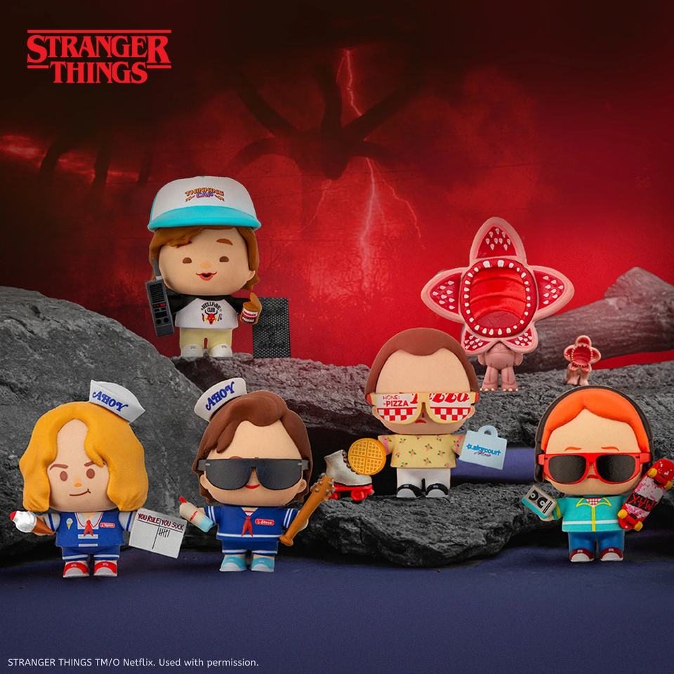 Cinereplicas Gomme Stranger Things Doll PVC Piccole Bambole Decorative di Eleven, Demogorgon, Dustin, Steve, Max, Robin con Scatola