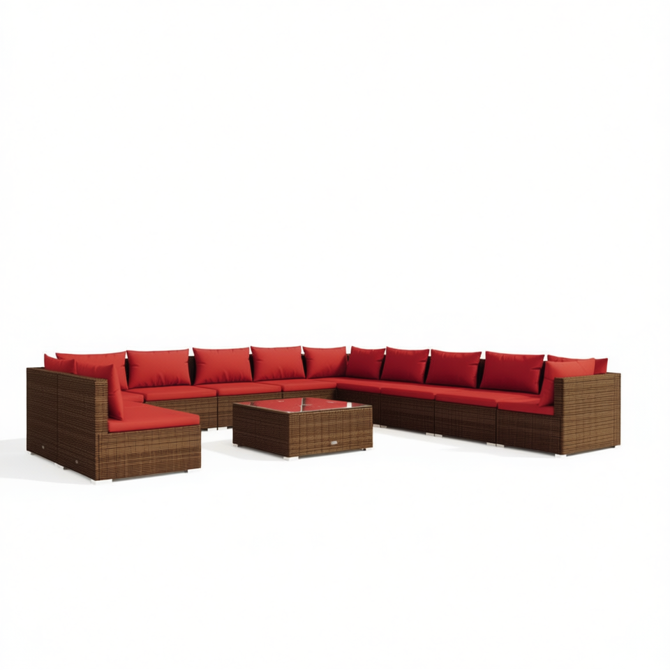 Set Lounge da Giardino Rosso Cinnamon, Mobili da Esterno in Rattan Marrone, 10+ Posti, Design Contemporaneo, Resistente alle Intemperie