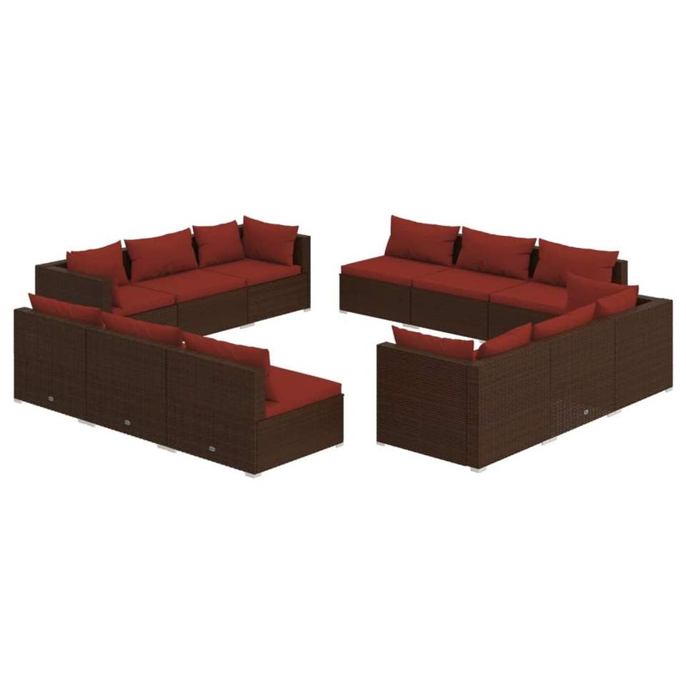Set Lounge da Giardino Rosso Cinnamon in Rattan Marrone, Arredamento da Esterno per 10 Persone, Resistente alle Intemperie, Design Contemporaneo