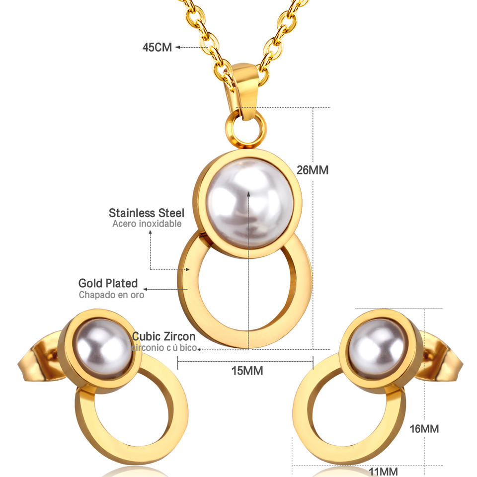 Circle Necklace Pearl Pendant and Earrings Sets Wholesale Price Women Stainless Steel Jewelry Set for Gift