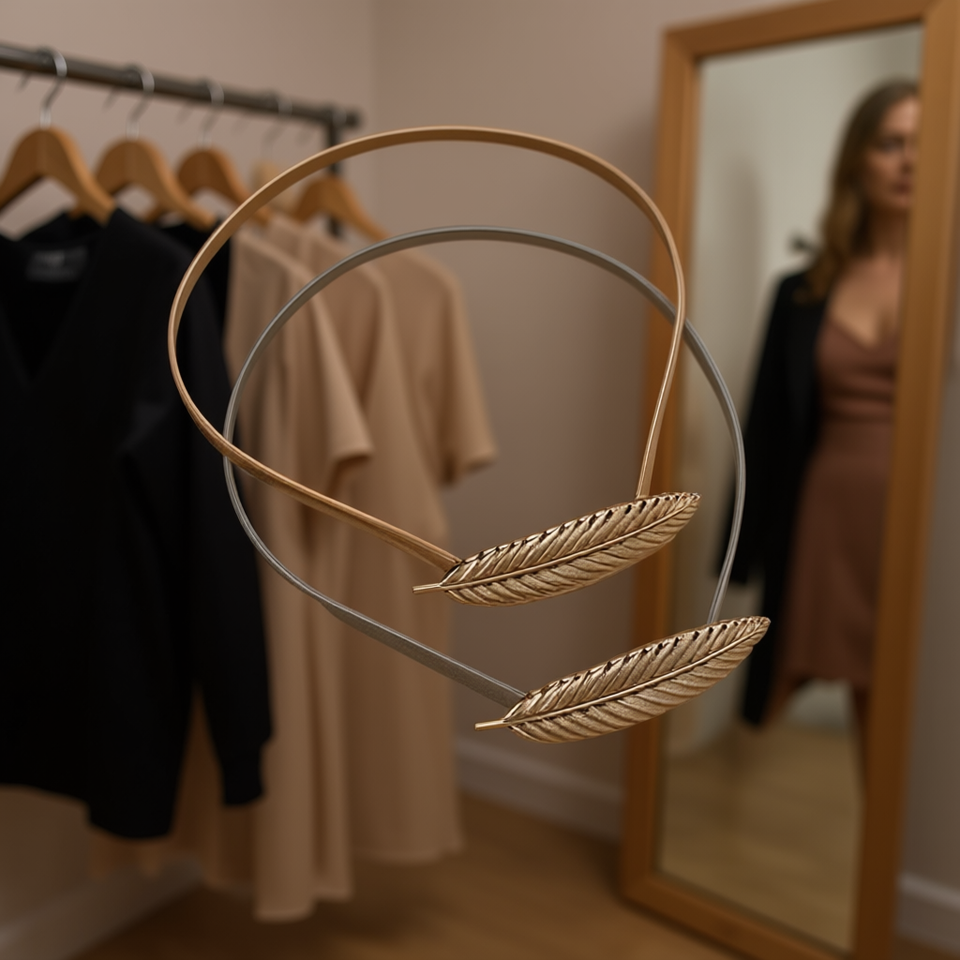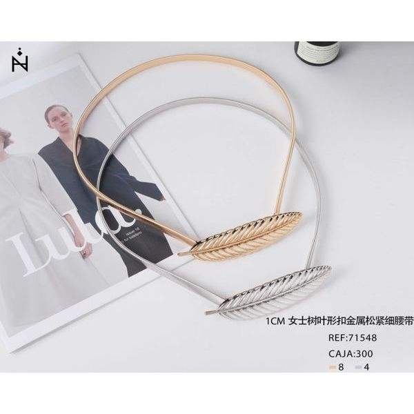 Citurones Women's Leaf Shape Metal Elastic Thin Belt 1Cm Bohemian Fashion Accessory