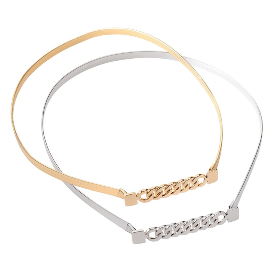 Citurones Women's Metal Elastic Thin Waist Belt 1Cm Chain Buckle Casual Style Stainless Steel Alloy Plate Buckle