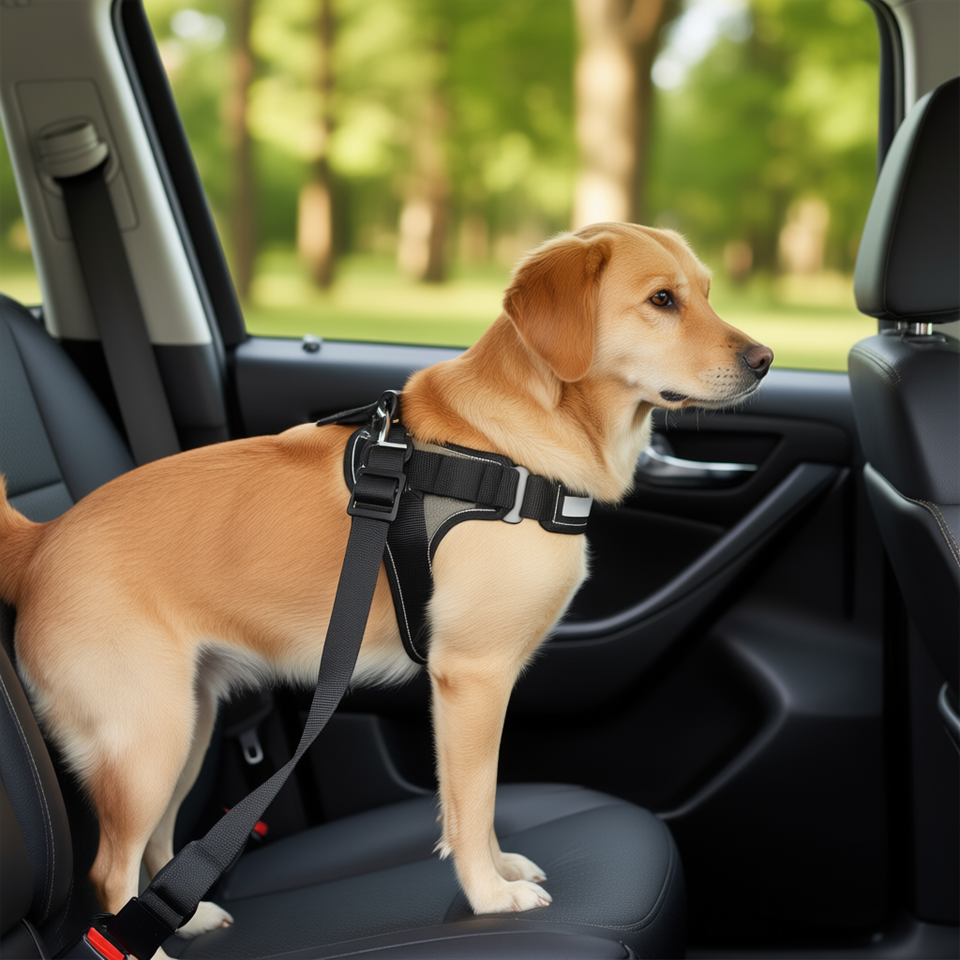 Cjpl Adjustable Nylon Dog Car Seat Belt Harness Black 2Pc Secure Pet Leash For Vehicle Travel
