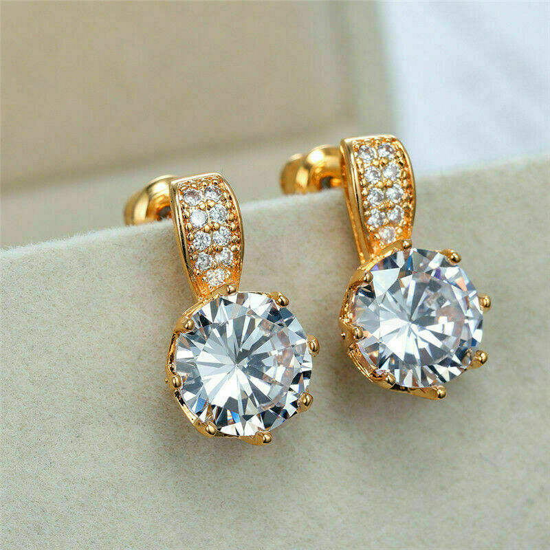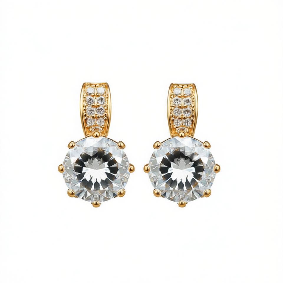 Classic 18K Gold Filled Stud Earrings With Round Crystal Rhinestone Claw Setting For Women Wedding Jewelry