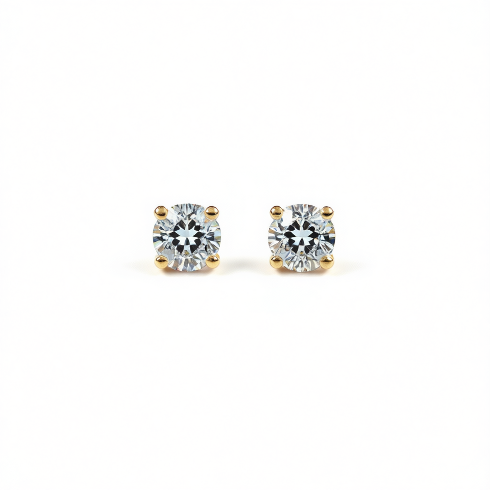 Classic 18K Solid Gold Diamond Stud Earrings Round Brilliant Cut Claw Setting Women's Wedding Jewelry