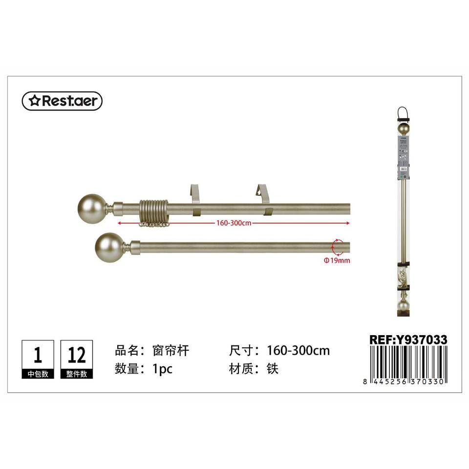 Classic 19mm Painted Iron Metal Curtain Rods 160-300cm with Simple Design for 5m-6m Curtains Includes Holder and Rings