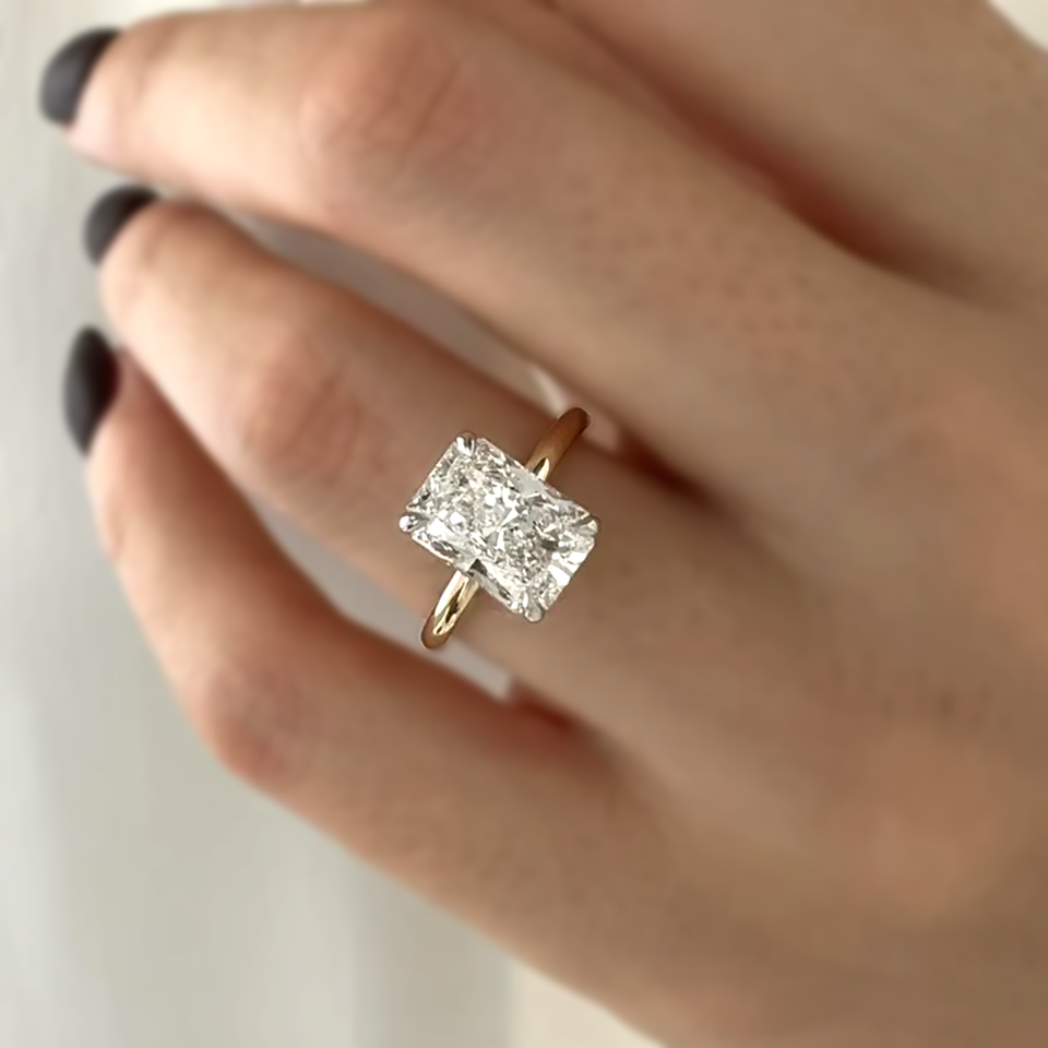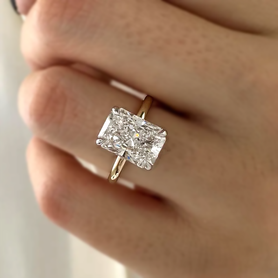 Anello Classico Solitario a 6 Griffe con Diamante Radiant Cut Coltivato in Laboratorio, Colore D-F, Purezza VS1 - Miglior Valore per l'Inventario di Gioiellerie