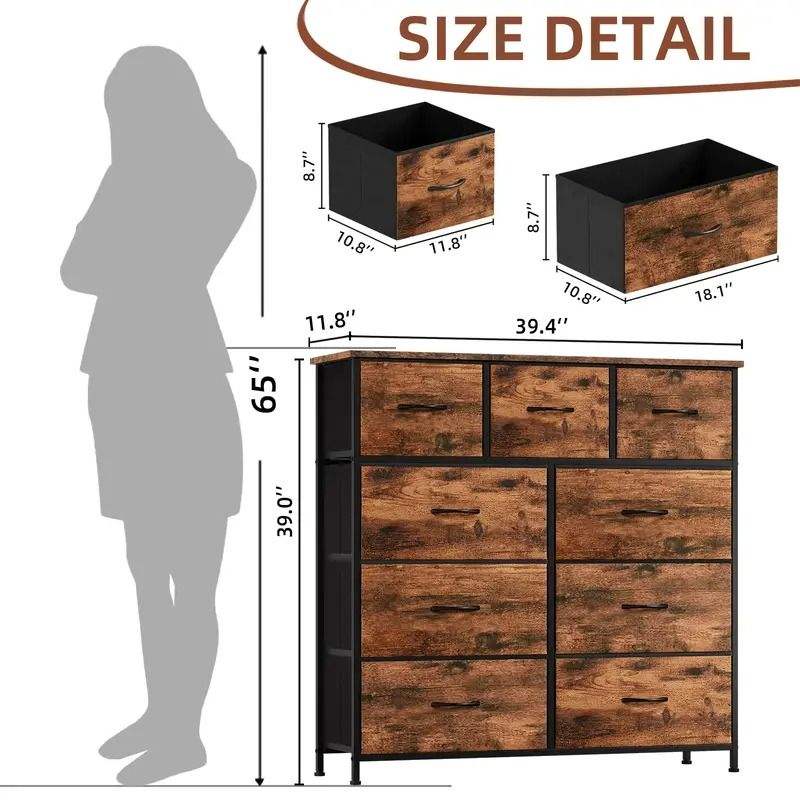 Classico Comò a 9 cassetti struttura in metallo con Top in legno tessuto organizzatore per camera da letto soggiorno ingresso ufficio armadio