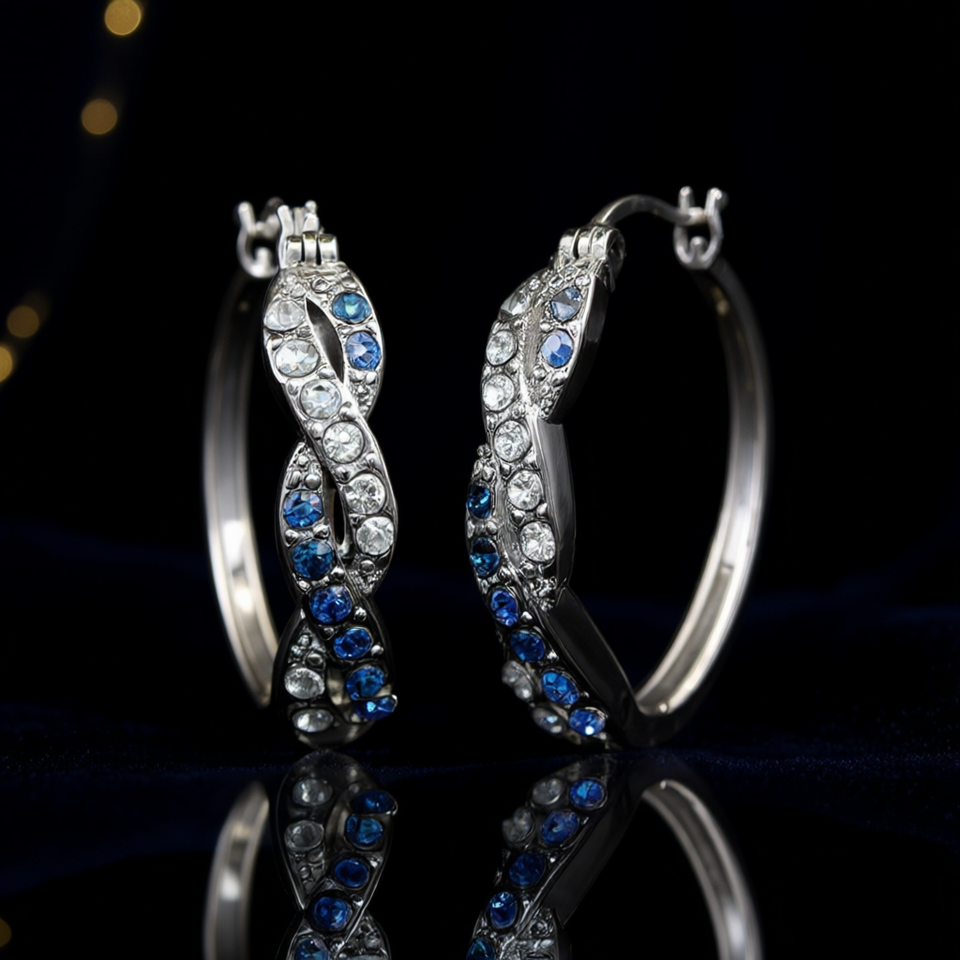 Orecchini a Cerchio Classici in Argento 925 con Cristalli Blu Incastonati per Uso Quotidiano Femminile Placcati in Rodio