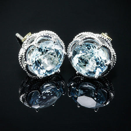 Orecchini a Perno Classici in Argento 925 con Topazio Blu, Montatura Rotonda a Griffe, per Uso Quotidiano Femminile