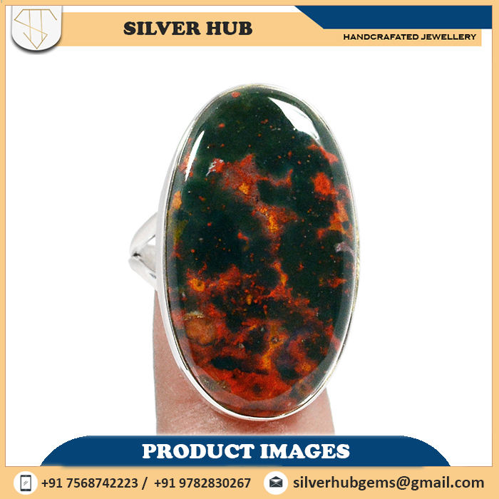 Anello Classico in Argento Sterling 925 con Pietra di Sangue Fatto a Mano Misura Regolabile in Vendita al Miglior Prezzo