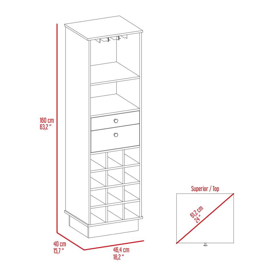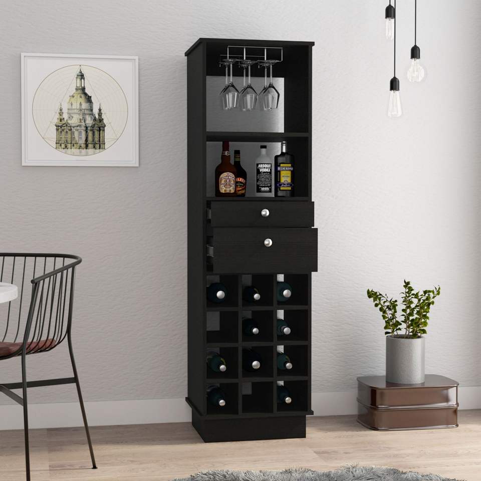 Mobile Bar Classico Nero con Due Cassetti e Dodici Portabottiglie Integrati
