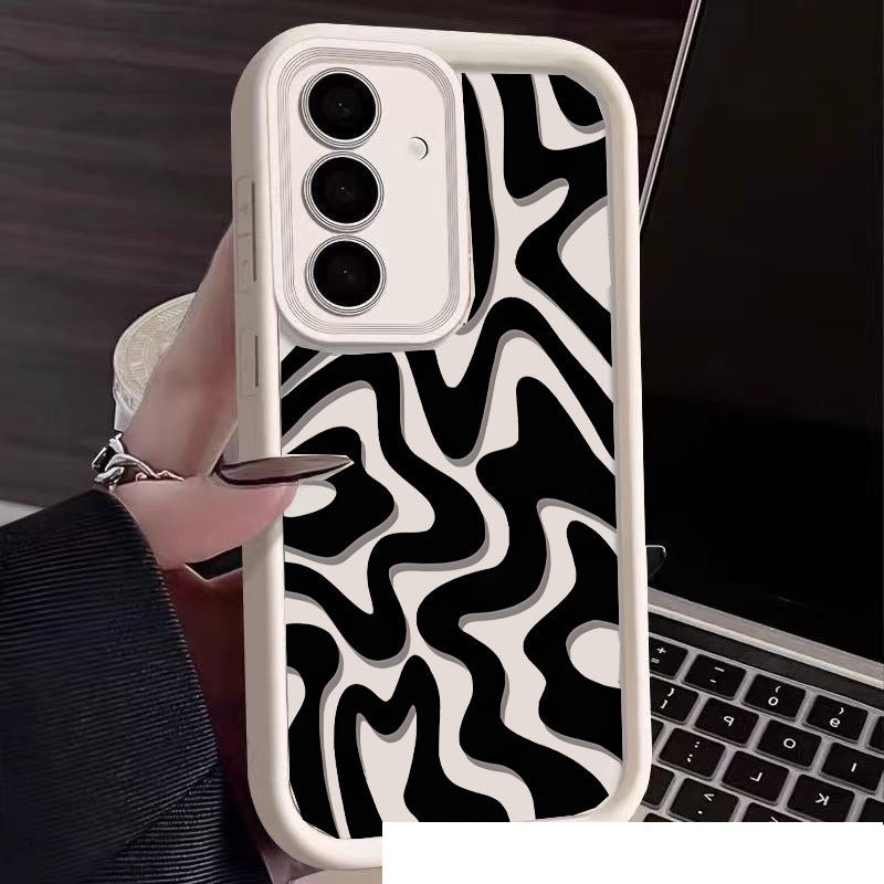 Classic Black Wave Print Ladder Lens Style Shockproof TPU Mobile Phone Cover Case for Samsung A03S A04 A05 A05S A06 A12 A13