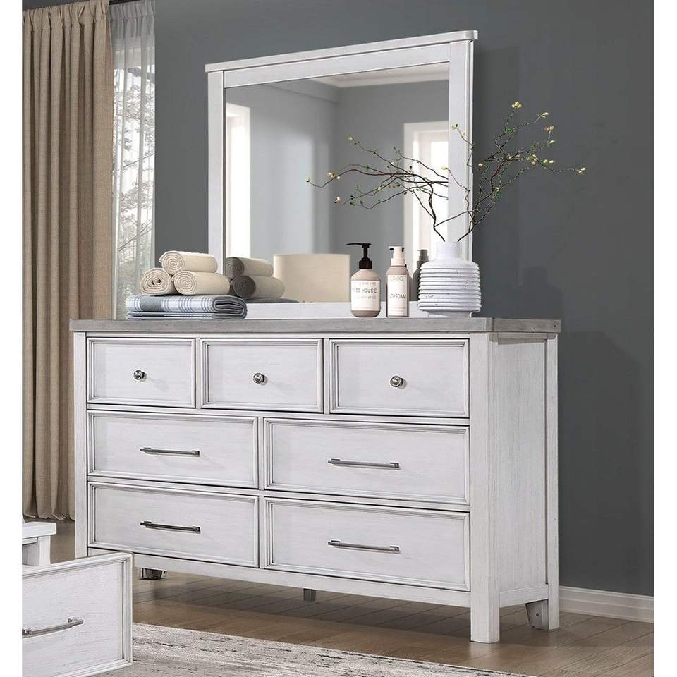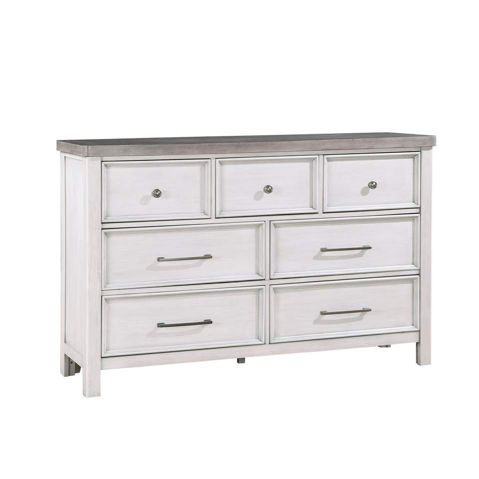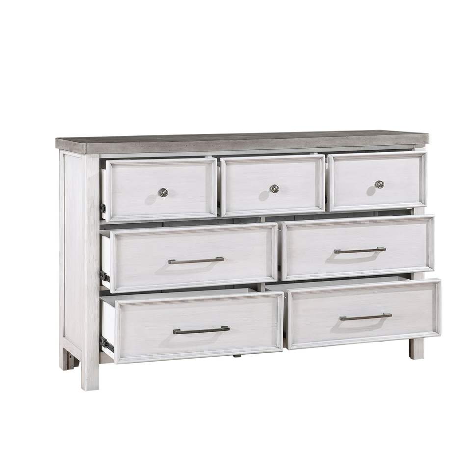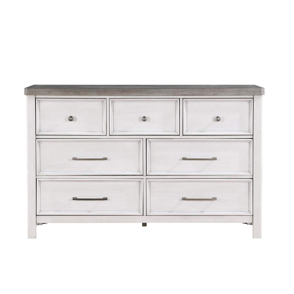 Comò Classico a 7 Cassetti per Camera da Letto, 1 Pezzo, Finitura Bianca e Grigia, Mobili in Legno
